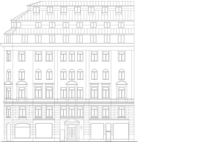 1889 stod Vasagatan 40 klart. Precis som i övriga Stockholm dominerades de nya husen på Norrmalm av historicismen, en stil som hämtade inspiration från tidigare storhetstider och epoker – särskilt renässansen, barocken och gotiken – och blandade dem i praktfulla och detaljerade byggnader. Fasaderna var putsade i ljusa färger, ofta med inslag av rött tegel. Kolonner, pilastrar, balustrader, fönsteromfattningar och reliefer stod för detaljerna som tillsammans med höga tak, kupor, torn och spiror gav husen dess karaktär.