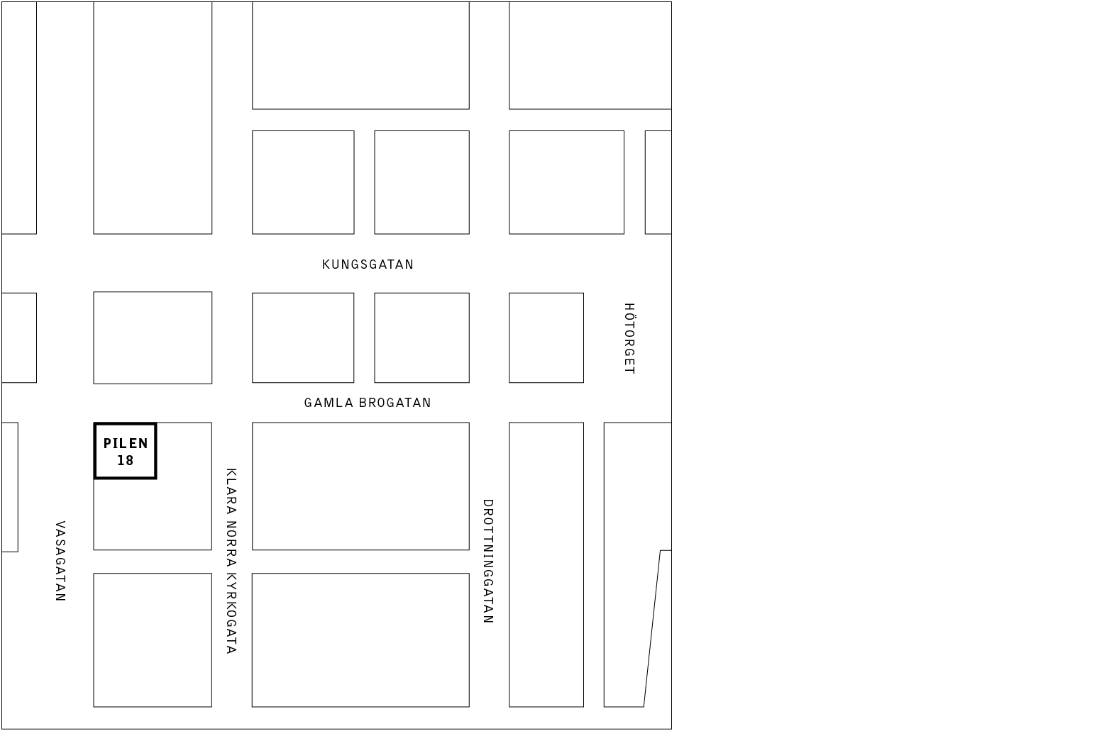 Mitt i hjärtat av Stockholm, i de klassiska Klarakvarteren, ligger kvarteret Pilen. Långt innan hotellfasader, kontorshus och rullväskor blev en del av vardagen gungade här hästkärrorna fram, lastade med varor till och från kajen vid Klara sjö. Från dagens Klarabergsgatan och söderut var Vasagatans föregångare i början på 1600-talet blott en 150 meter kort gatstump. På en karta från 1654 kallas gatan Siögrenden, därefter fick den namn som Oxenstiernegränden och Mejsters Gränd. Fortfarande vid mitten av 1800-talet, då gatan hade bytt namn till Clara Strandgatan var den en smal och smutsig historia med trasiga hus och sjöbodar. Gatans sträckning fick så småningom hjälp av utfyllnad från Klara Sjös strand, och när Centralstationen år 1871 kom på plats och band ihop södra och västra stambanan lade det grunden för kvarteren som vi ser idag.